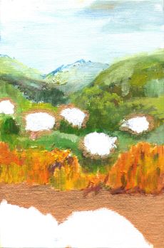 Psalmen auf Postkartengröße von Friederike Kirchner, Ölmalerei, 10,5×15 cm, 2021